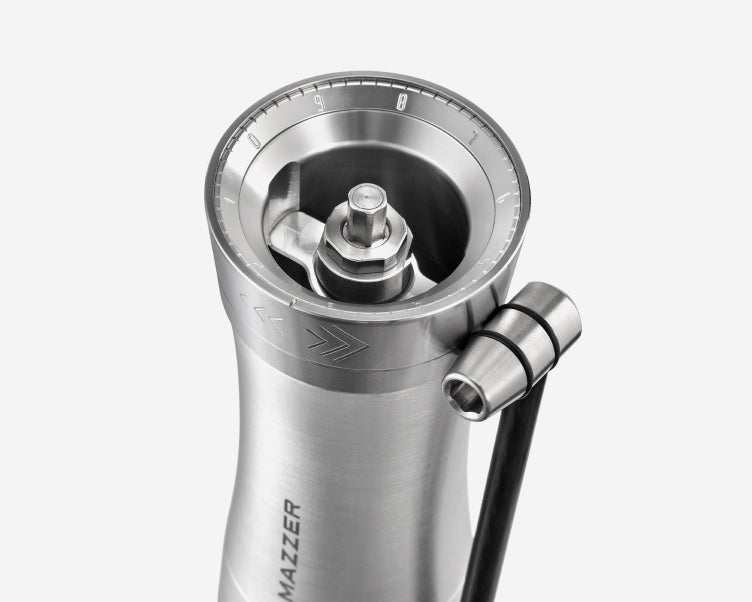 Omega is a stainless steel coffee grinder with anodized aluminum and carbon fiber components to optimize mechanical performance.